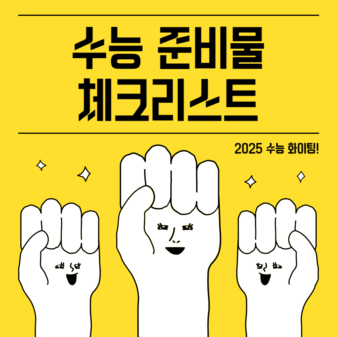 수능은 여러분의 노력과 열정이 담긴 결과물이에요. 준비물 체크리스트를 잘 활용하고, 자신감을 가지고 시험에 임하세요. 여러분의 꿈을 이루기 위한 첫걸음이니, 최선을 다해 보세요! 💪