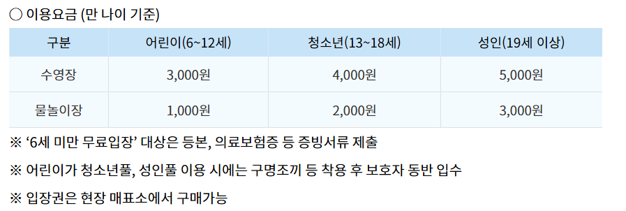 물놀이장 요금