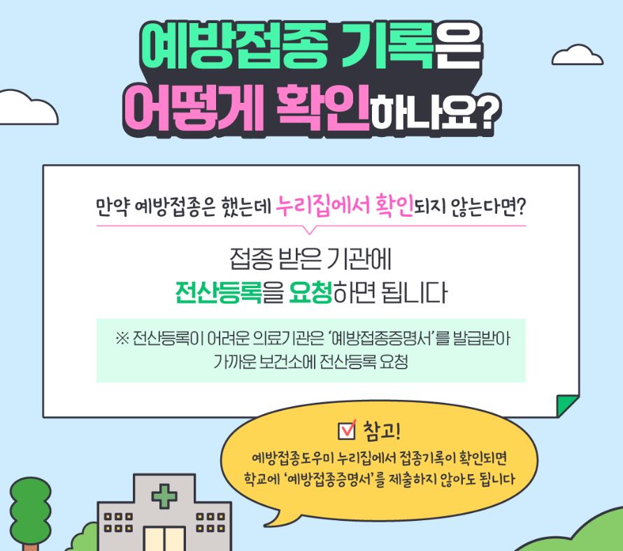 👉 아직 입학 전 예방접종을 하지 않으셨다면, 지금 바로 예방접종도우미 사이트에서 예방접종 현황을 확인하고 접종 일정을 예약해보세요!
