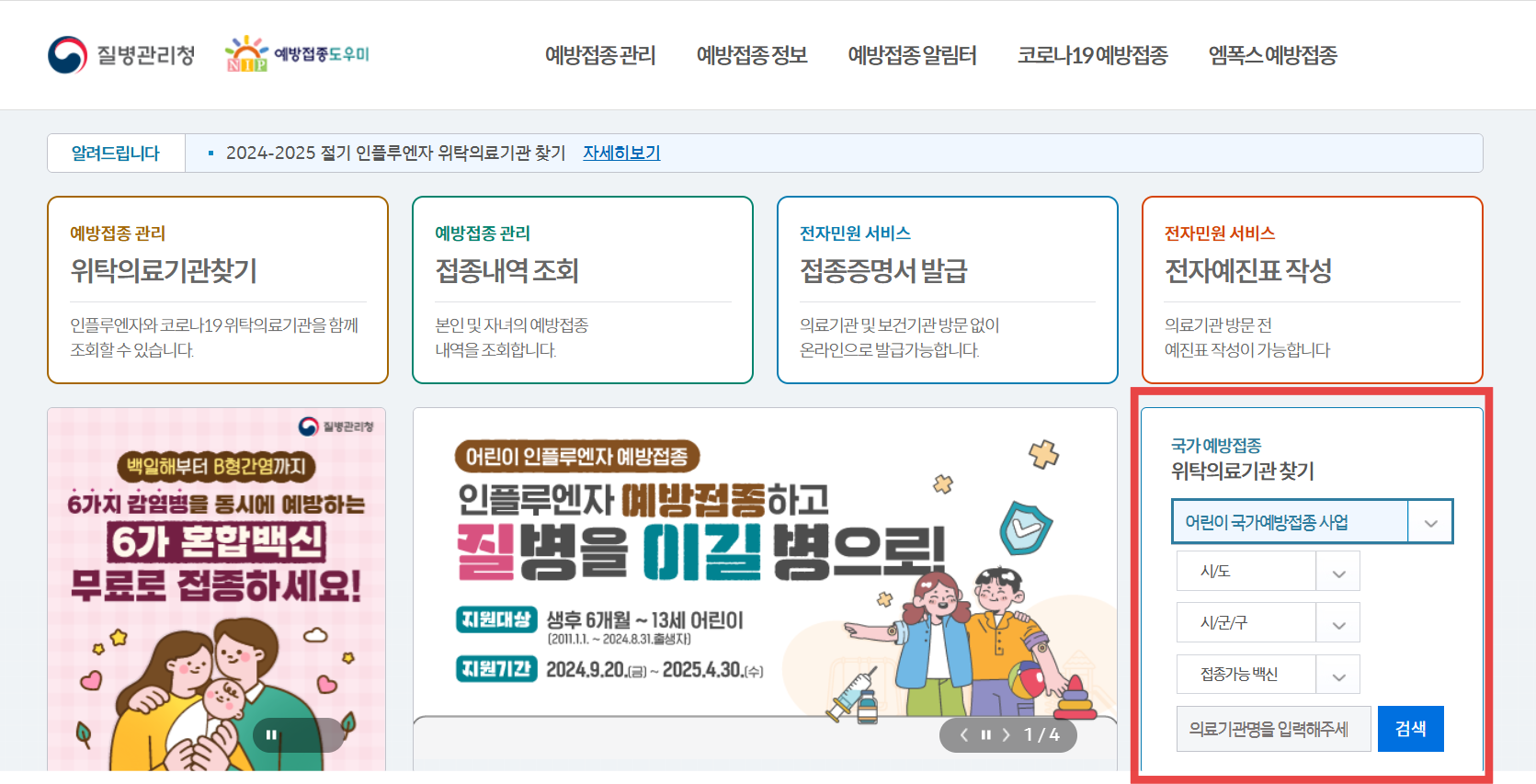 ✅ 예방접종 위탁 의료기관: 질병관리청 예방접종도우미 사이트(https://nip.kdca.go.kr)에서 지역별 병원을 검색할 수 있습니다.