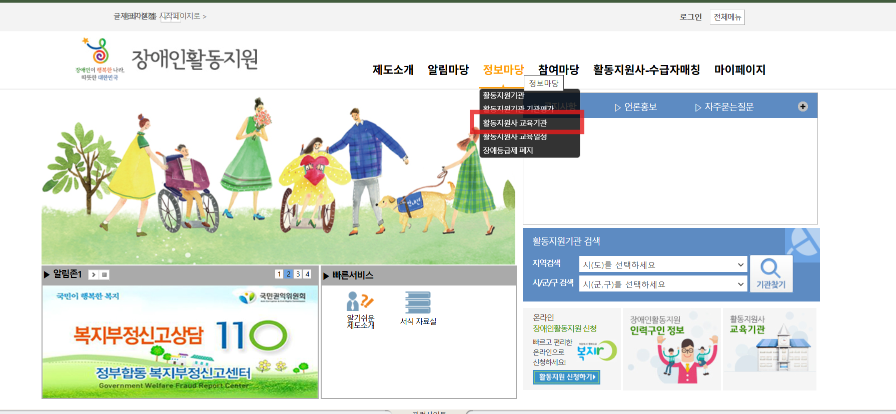 1. 활동 지원 서비스 기관 찾기: