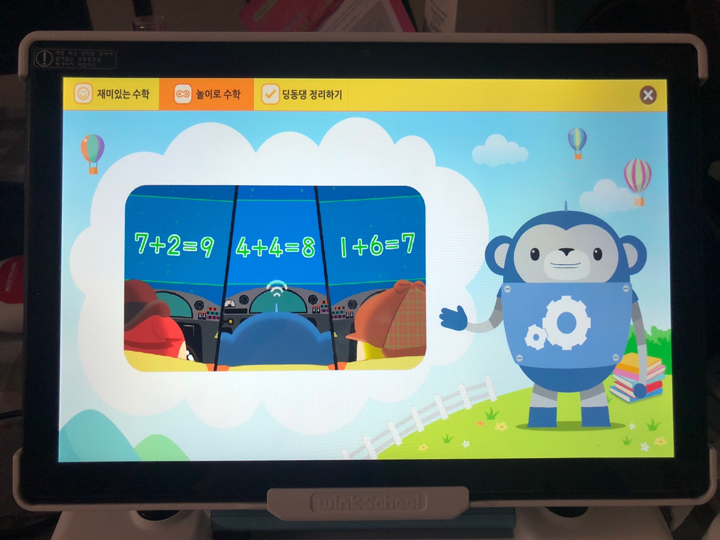 약간 버벅거릴 때가 있고 터치가 잘 먹히지 않을 때도 제법 많다. 그리고, 수학의 경우 학습하기 전에 애니메이션 영상을 보아야 한다. 영상이라면 만화 애니메이션보다는 선생님이 나와서 설명해 주는 동영상을 보여주고 싶은데 그런 게 아니어서 아쉽다. 그런데 안보여주고 싶다면 그냥 건너뛰어도 되는 듯하다.
