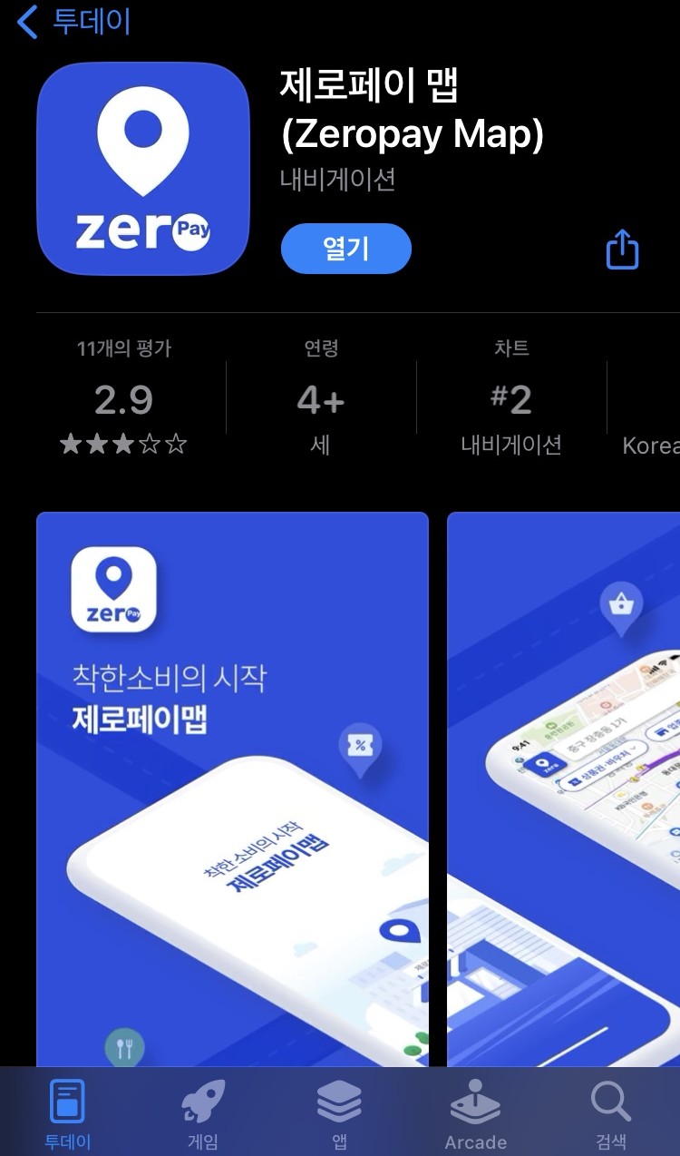 1. 아래와 같이 플레이 구글이나 앱스토어에서 '제로페이맵'을 다운로드하여 실행