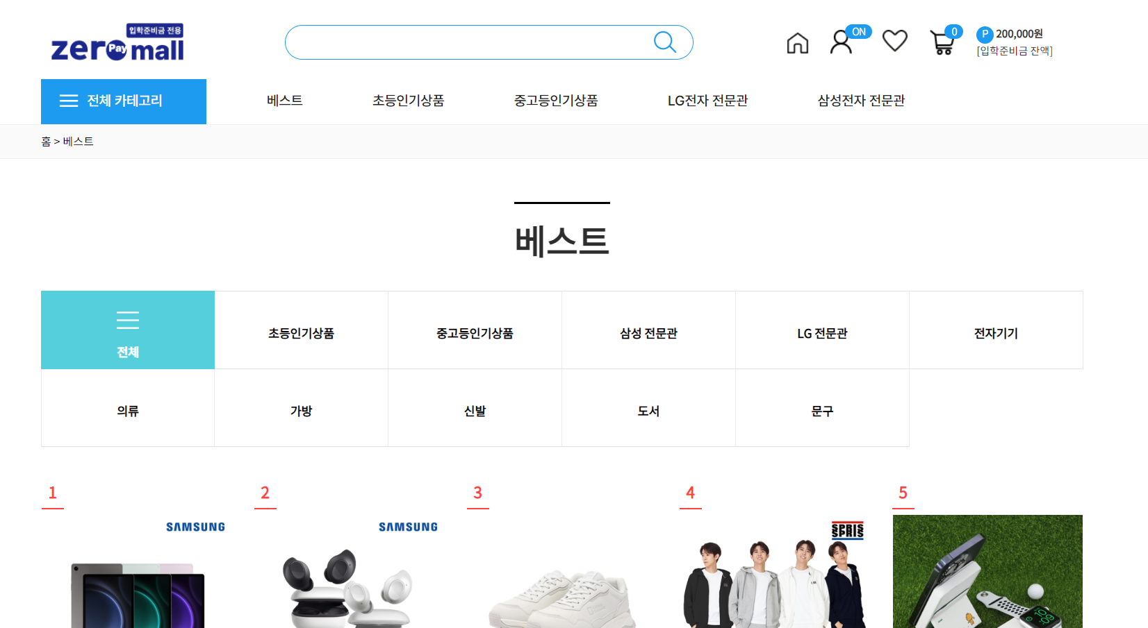 온라인 상에서는 두 사이트 통해 구매할 수 있습니다. 이 사이트 내에서 판매하는 것들로는 의류, 책, 신발, 문구류 뿐만 아니라 핸드폰 거치대, 전자제품 등등 다양한 제품들이 있어요. 지금부터는 온라인상에서 입학준비금 사용하는 법을 알려드리겠습니다.