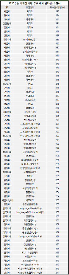 2025학년도 수능의 합격선은 서울대, 연세대, 고려대 등 주요 대학의 경우, 의대와 같은 인기 학과에서 특히 높은 점수를 요구할 것으로 예상됩니다. 예를 들어, 서울대 의예과의 경우, 합격선이 300점 만점에 297점으로 예상되고 있습니다.